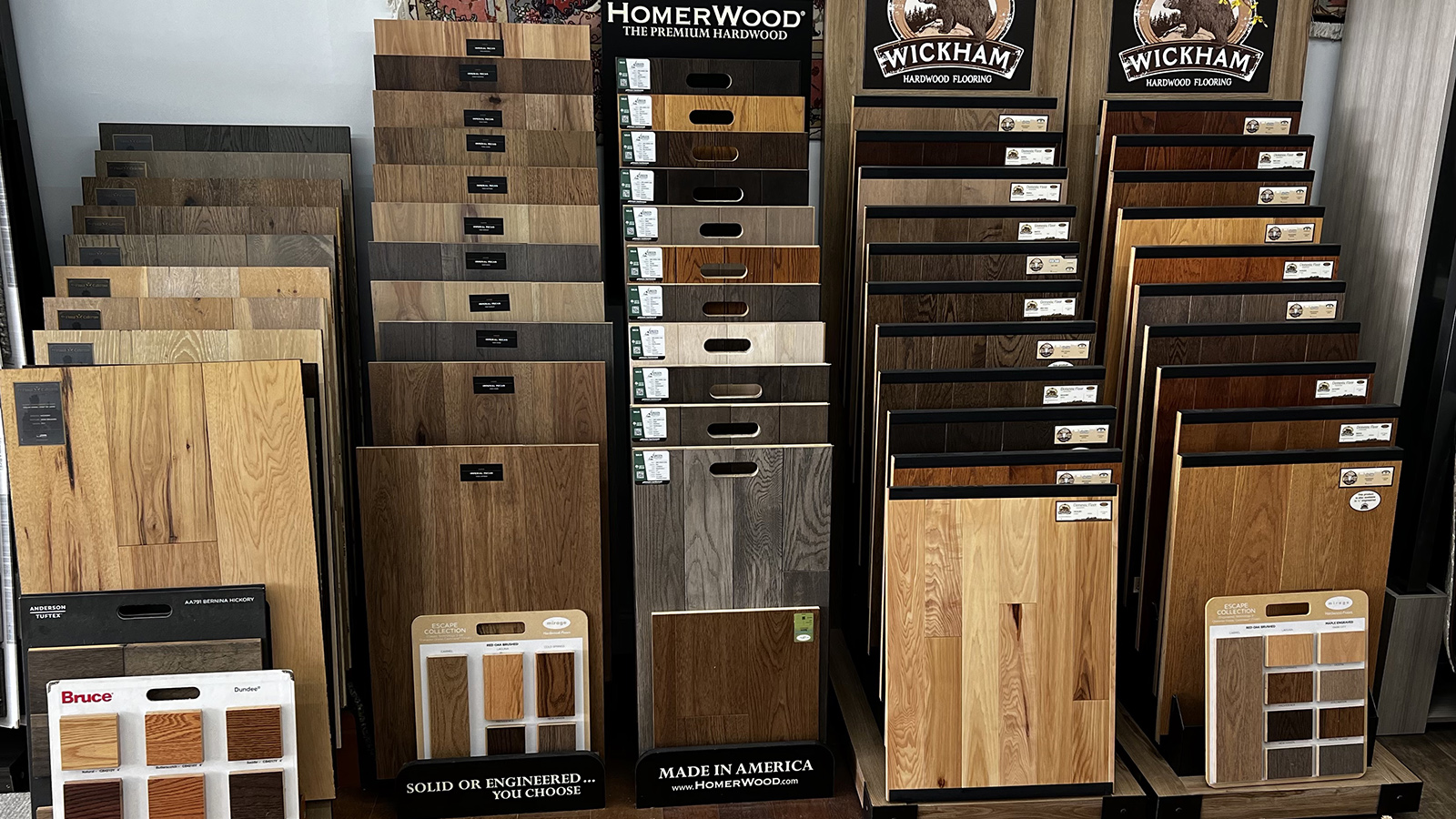 We carry a variety of styles, sizes, colors, and brands of carpet, hardwood flooring, linoleum, laminate floors, vinyl tile and ceramic tile.